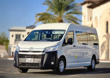 Toyota samll buses are available for transfer in uae like dubai to abu dhabi, Al Ain, Ras ul Khaimah, Ajman, Sharjah.